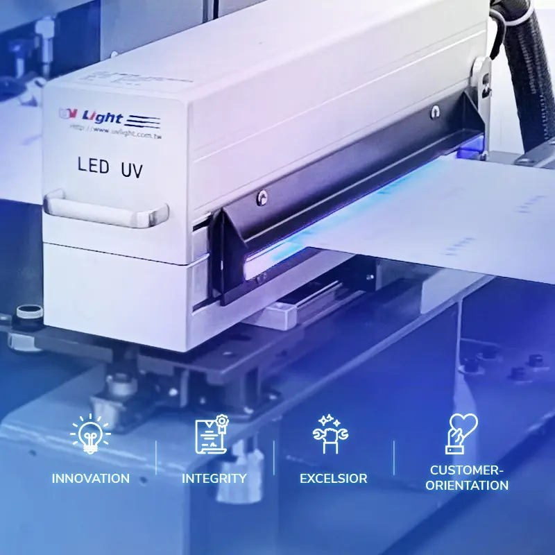 光源企業40年來致力於UV固化系統開發製造,因應全球追求節能、環保趨勢,推出LED UV及高效率固化設備,結合先進功能,集低溫、節能、環保優勢於一體,提供印刷相關行業客戶低操作成本,及高效能耐久耐用的解決方案。以致力開發更高品質產品為主要目標,並提供完善之售後服務,選用光源原廠配件品質有保證。